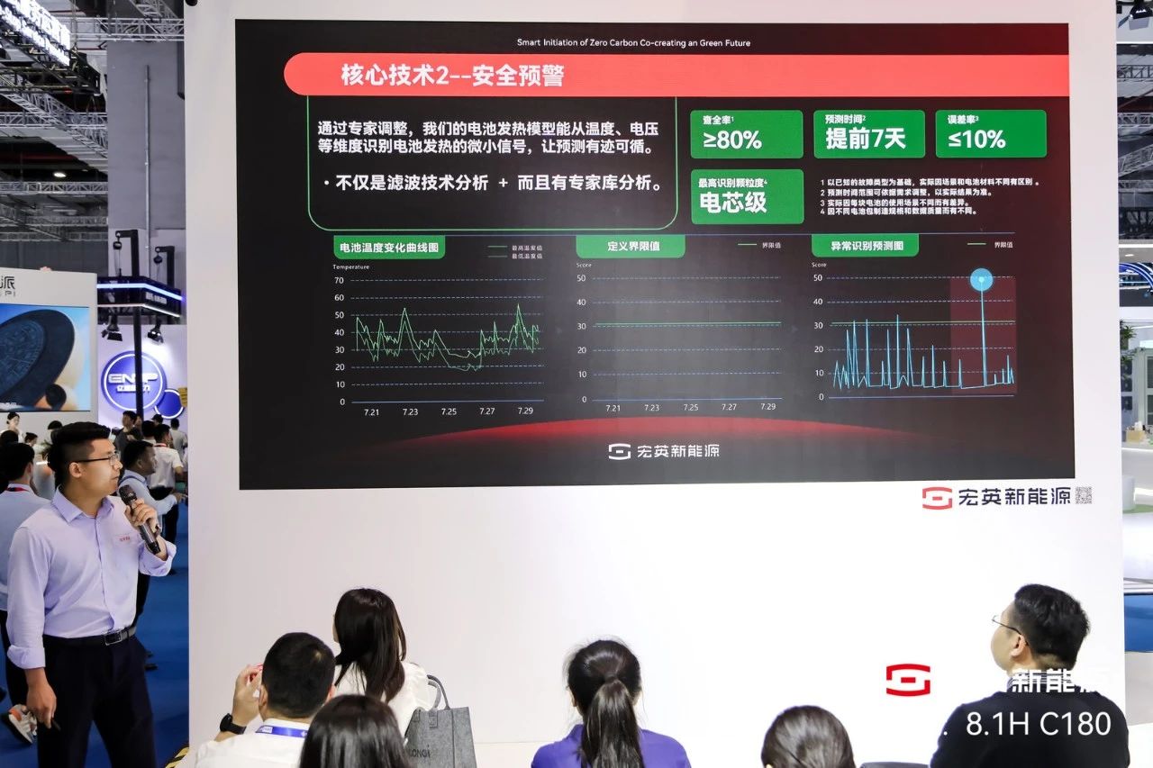 今年会还提供基于电池全生命周期的储能安全闭环服务。在事故发生前7天,一旦发生故障告警,系统能输出警告和异常的结果,并自动触发故障维修工单,确保高效闭环处理。此外,与顶级保险公司的合作也避免了因电池自身原因导致的燃烧事故的财产损失,这项服务可为客户整体降本约20%。